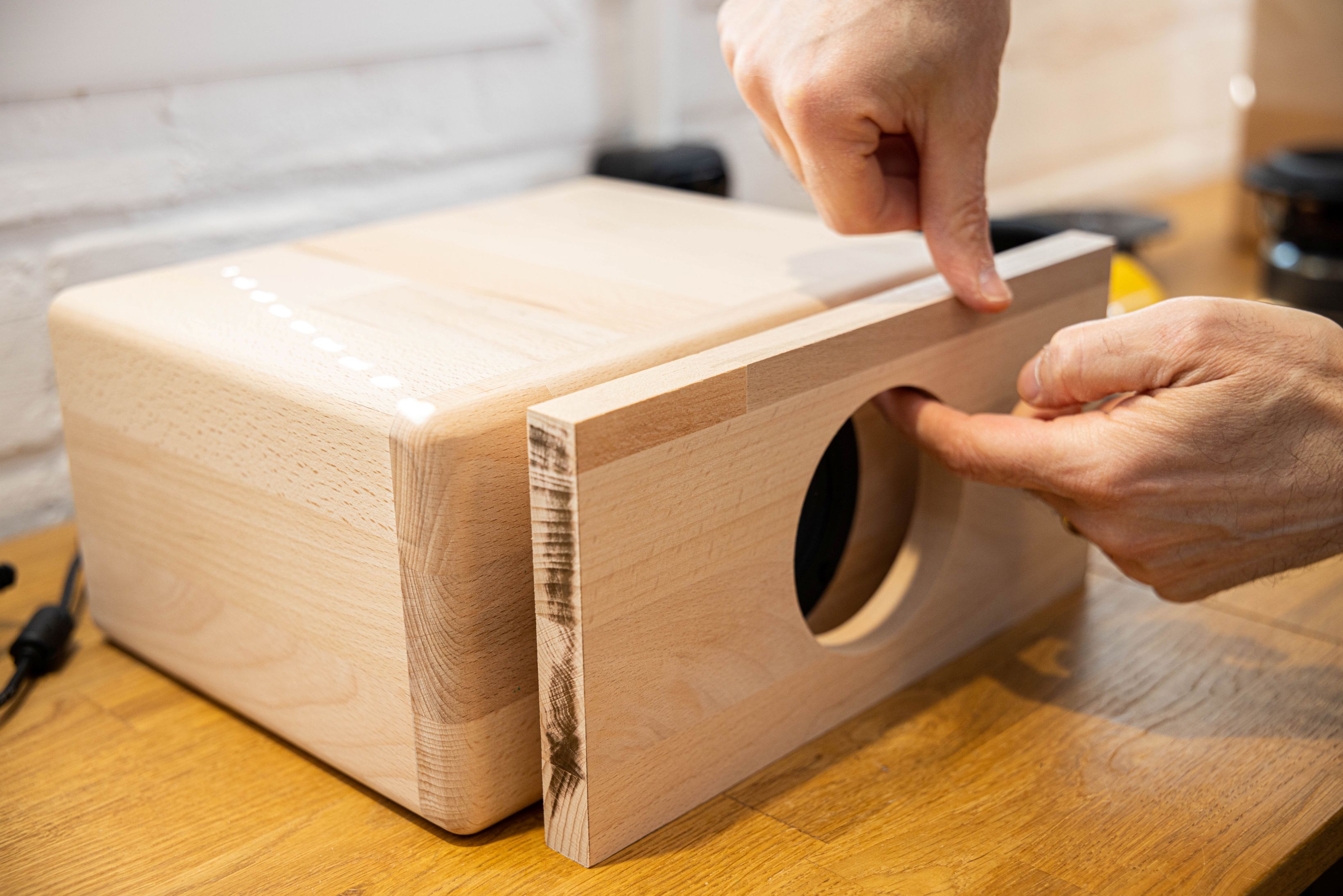 À l’issue de la session, chacun repart avec sa propre enceinte en bois massif, à la fois esthétique, fonctionnelle et porteuse de sens.