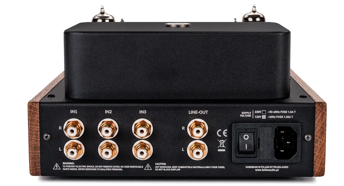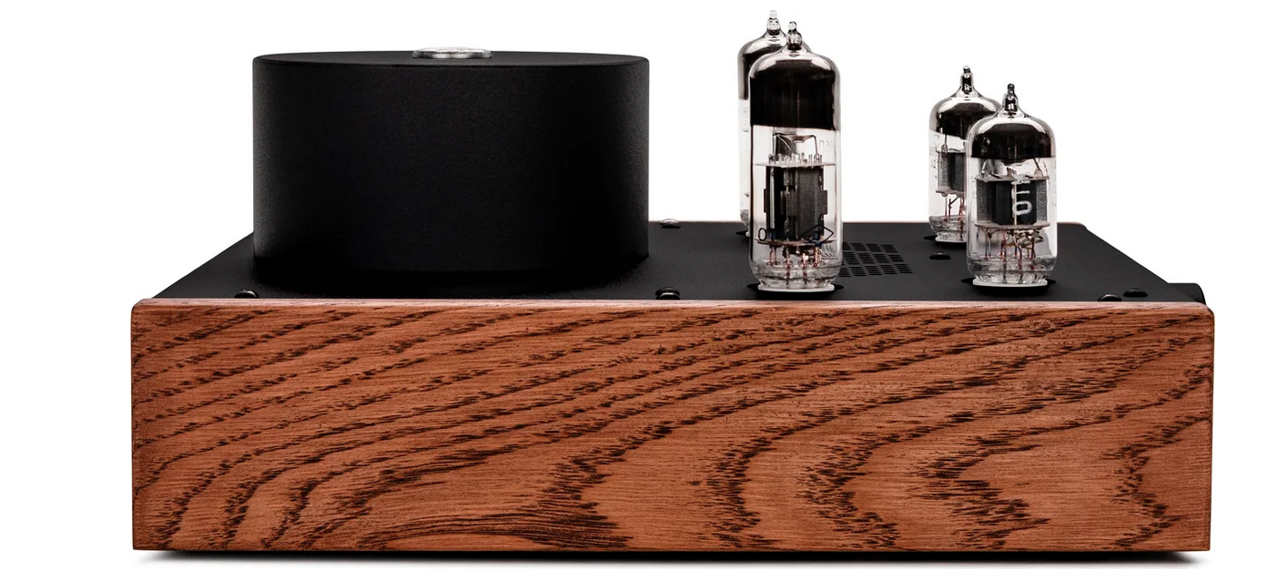L'Echo Vibe reprend la base technique du Classic mais ajoute des évolutions significatives pour l'écoute au casque. Trois entrées RCA permettent de connecter plusieurs sources. Le potentiomètre RK27 Alps remplace l'ALPS Blue Velvet du Classic, promettant une meilleure précision dans le réglage du volume. Les condensateurs ont été revus, le transformateur mieux blindé. Les panneaux latéraux en bois peuvent être gravés – un clin d'œil à l'artisanat de luxe.